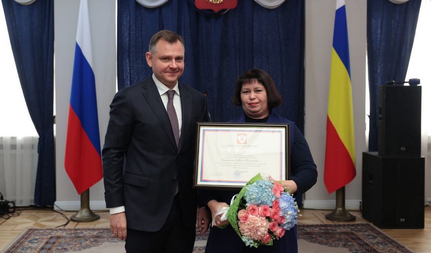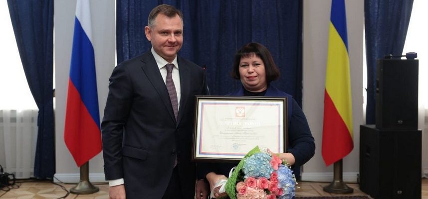 В Ростовском общественном собрании состоялась торжественная церемония вручения государственных наград. В числе удостоенных почестей — педагог из Азова. Губернатор Ростовской области Юрий Слюсарь вручил учителю азовской средней школы № 3 Анне Ермолаенко Почётную грамоту Президента Российской Федерации.