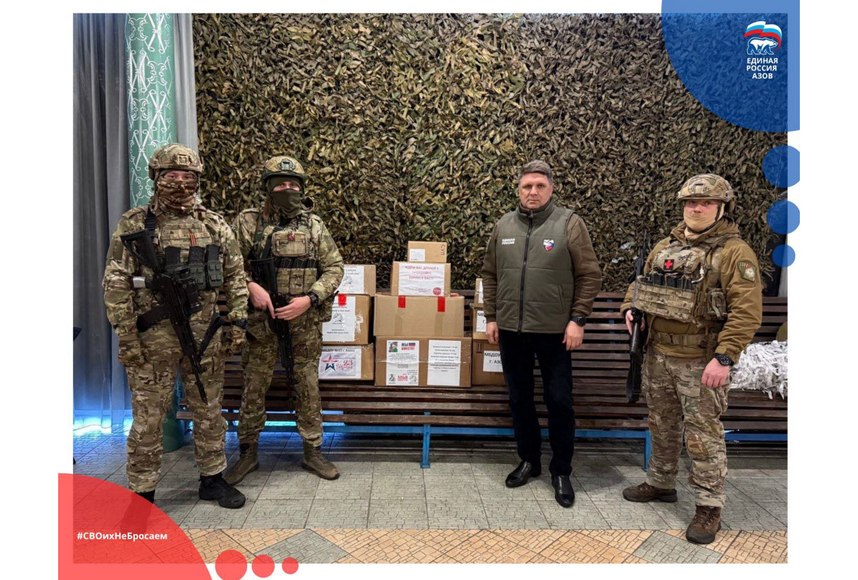 Секретарь местного отделения партии «Единая Россия» Владимир Влазнев лично передал бойцам на Запорожском направлении гуманитарный груз от азовчан.
