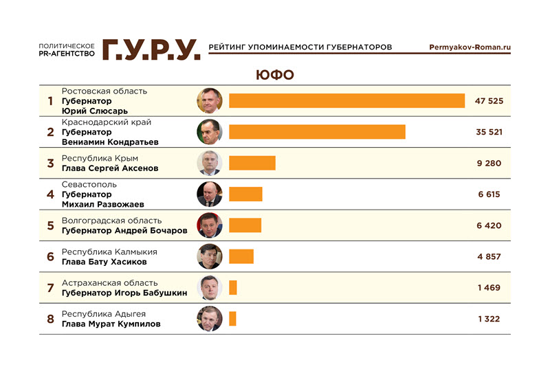 Второй месяц подряд в тройке лидеров Telegram-рейтинга – уже избавившийся от приставки врио губернатор Ростовской области Юрий Слюсарь (47 525 упоминаний). На выборах он уверенно обошел оппонентов, набрав 81,25% голосов.