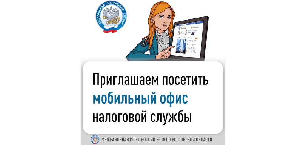 Межрайоная ИФНС №18 по Ростовской области приглашает налогоплательщиков посетить мобильный офис налоговой службы. Работа мобильного офиса будет организована с целью информирования граждан по вопросам уплаты имущественных налогов, а также НДФЛ в отношении доходов, по которым он не был удержан.
