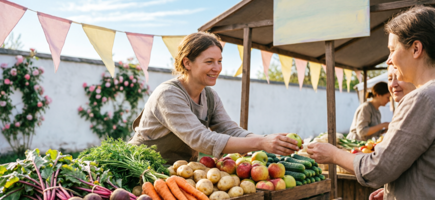 Торговые места для фермеров и владельцев личных подсобных хозяйств бесплатные. Это поддерживает местного производителя и позволяет продавать продукты без посредников. Для покупателей — дешевле и свежее.