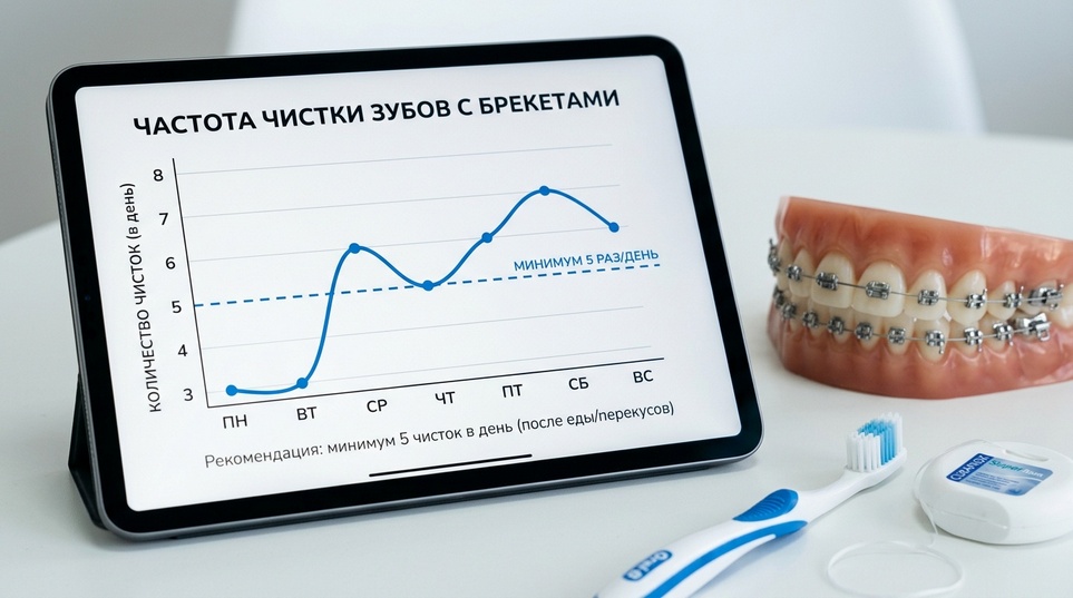 | Тип брекетов | Рекомендуемая частота | Риск осложнений без чистки |