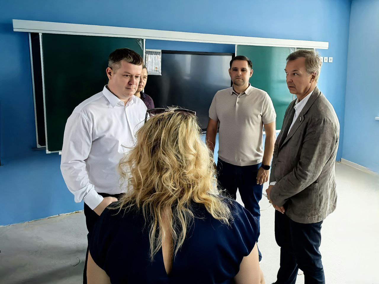 Глава города Азова Дмитрий Устименко вместе с 1-м заместителем председателя Совета Федерации РФ Андреем Яцкиным вновь провели объезд капитально ремонтируемой школы №5.