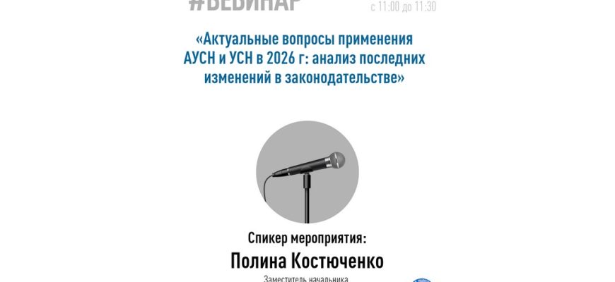 Приглашаем налогоплательщиков принять участие в вебинаре по теме «Актуальные вопросы применения АУСН и УСН в 2026 г: анализ последних изменений в законодательстве».