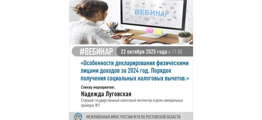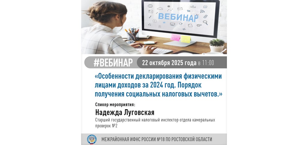Приглашаем налогоплательщиков принять участие в вебинаре по теме «Особенности декларирования физическими лицами доходов за 2024 год. Порядок получения социальных налоговых вычетов».
