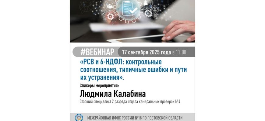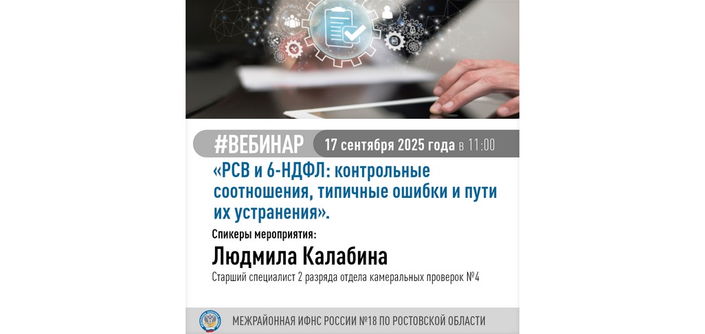 Приглашаем налогоплательщиков принять участие в вебинаре по теме «РСВ и 6-НДФЛ: контрольные соотношения, типичные ошибки и пути их устранения».