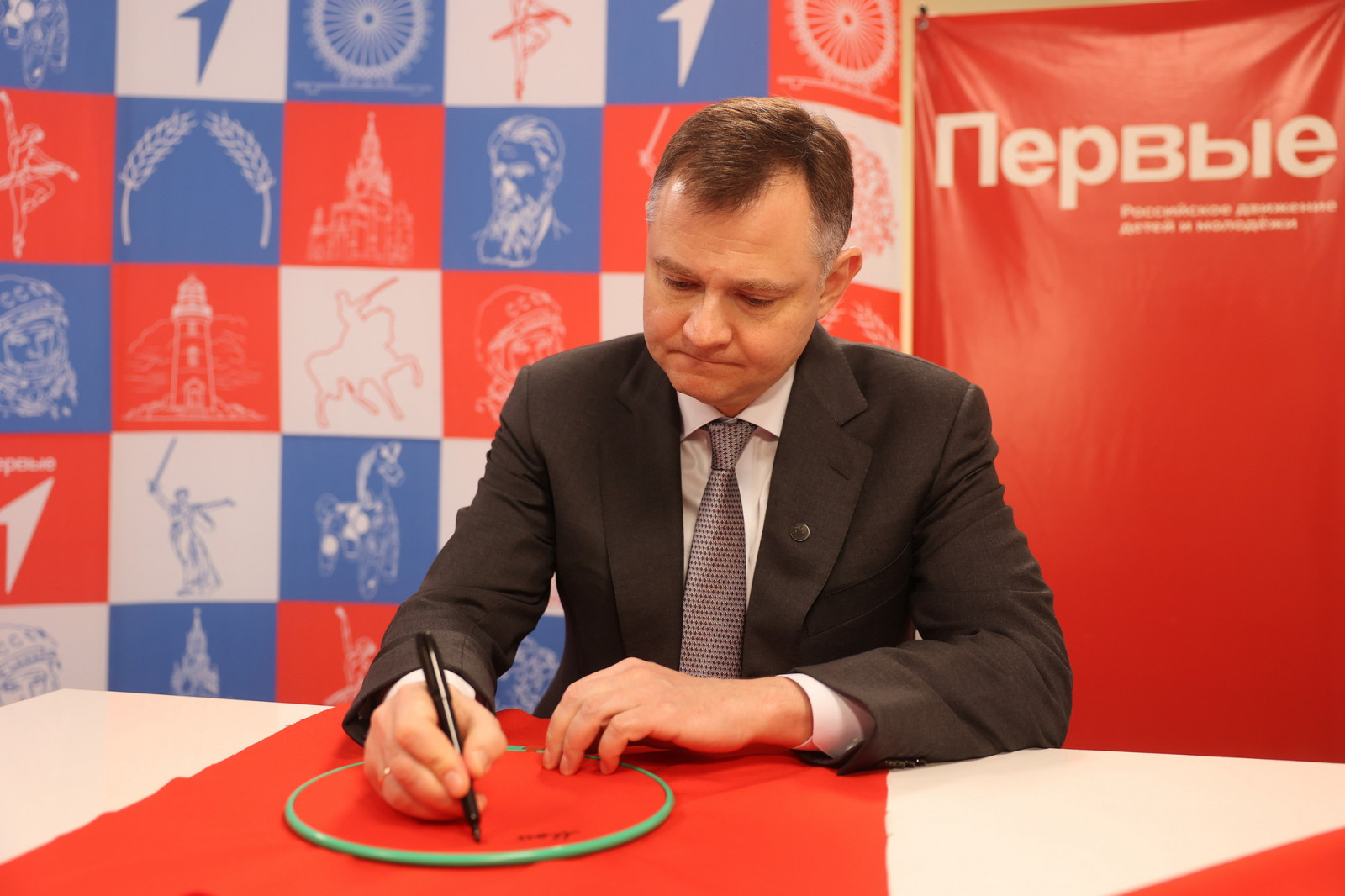 Глава Ростовской области Юрий Слюсарь принял участие в региональной патриотической акции «Полотно Победы», вписав на отрезе полотна имя своего деда-фронтовика Николая Слюсаря.