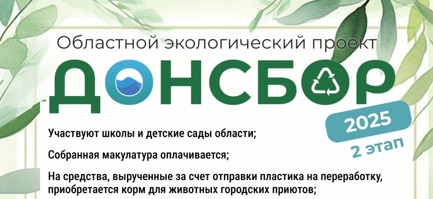 8 сентября 2025 года стартовал второй этап эколого-просветительского проекта «ДОНСБОР-2025». Цель проекта: вовлечение детей Ростовской области и их семей в процесс раздельного накопления вторичного сырья. Проект реализуется при поддержке Министерства природных ресурсов и экологии Ростовской области и регионального оператора «ООО Экоград-Н».
