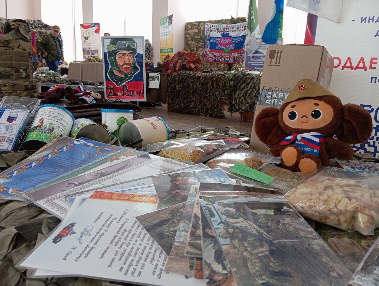 Важнейшей частью мероприятия явилась широкомасштабная выставка, на которой были представлены образцы изготовленной волонтерами продукции. Здесь можно было увидеть все: от теплой одежды, продовольственных наборов и окопных свечей до специально сделанных инструментов и оборудования, необходимого на передовой.