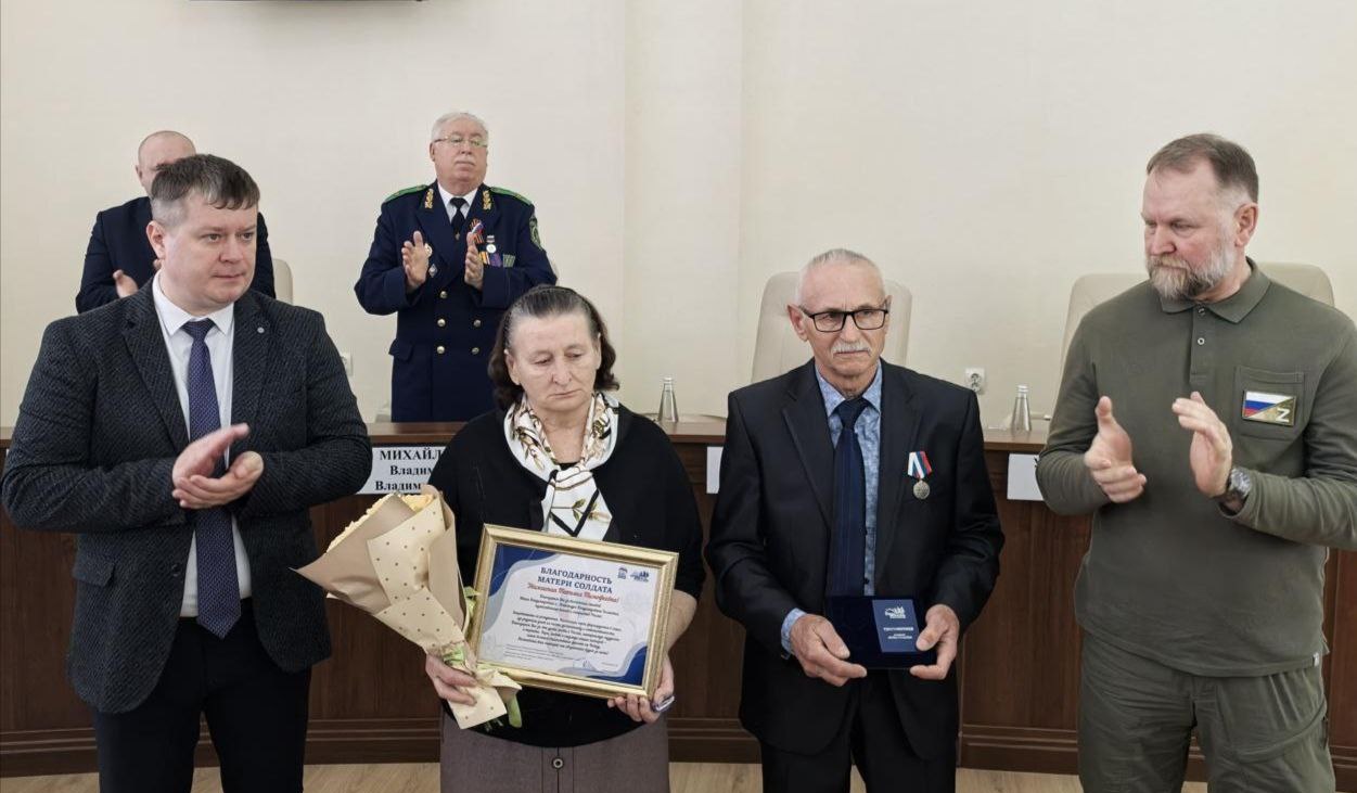 Вы стали достойным примером для своих сыновей, раскрыв их лучшие качества, привив чувство патриотизма. И сейчас вместе с ними вы продолжили священную миссию по борьбе с фашизмом. Предметом гордости каждой семьи являются награды, полученные нашими дедушками, отцами, прадедами в Великой Отечественной войне, в Афганистане, в горячих точках. Пусть и сегодняшняя награда станет не менее важной семейной реликвией», – обратился к присутствующим Дмитрий Устименко.