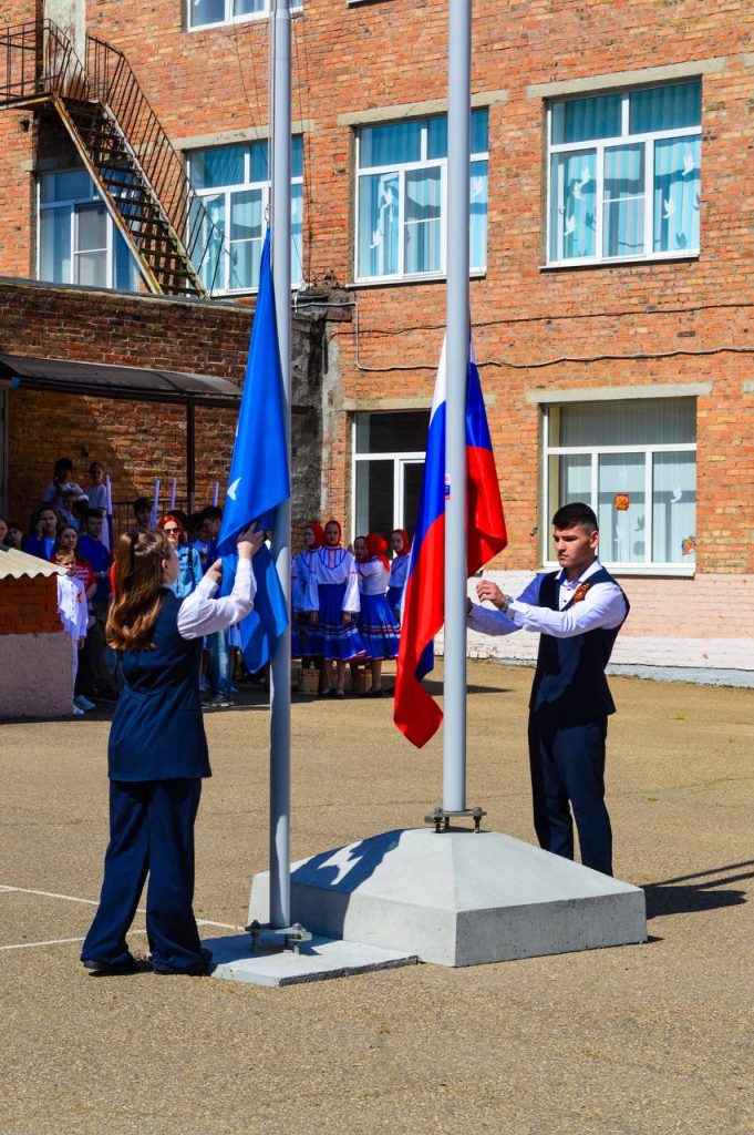 В начале торжественной церемонии открытия патриотического квеста «Дорогами Победы» под государственный гимн Российской Федерации был торжественно поднят государственный флаг нашей страны. Это право было доверено ученикам школы №2 – Ляшенко Александру и Харченко Дарье. Открыла мероприятие председатель местного отделения Движения Первых Анастасия Ивановна Белоусова, а затем с напутственными словами выступили начальник сектора информационно-методической работы Управления образования Елена Леонидовна Колпаченко и директор МБОУ СОШ №2 Ирина Петровна Дьяченко.