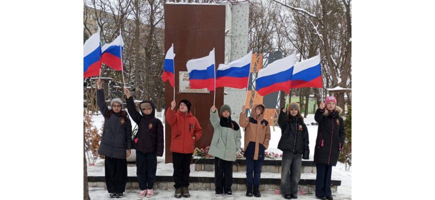 На фото: ученики МБОУ СОШ №1 у памятника Аркадию Штанько в День освобождения Азова от немецко-фашистских захватчиков.