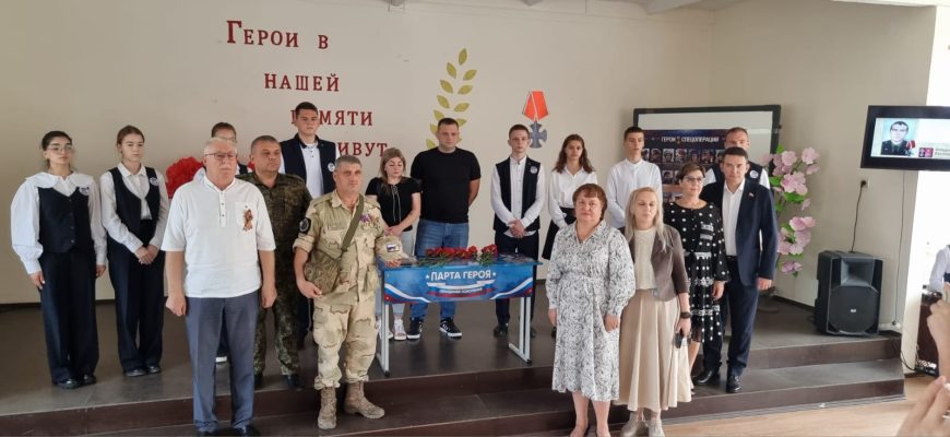 Дьяченко И.П., директор школы №2, не сдерживая волнения, подчеркнула важность проекта «Парта Героя» в патриотическом воспитании подрастающего поколения, цель которого рассказать о земляках-героях, выпускниках школ, совершивших доблестные поступки, проявивших личное мужество и готовность к самопожертвованию.