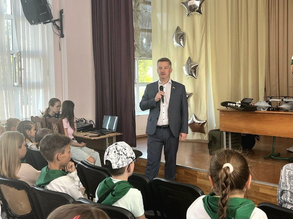 В День ветеранов боевых действий депутат Государственной думы Федерального собрания РФ Антон Гетта вместе с героями-ветеранами СВО Павлом Сапега, Виктором Приходько и Никитой Куценко провели «Урок мужества» в летнем лагере школы №13 города Азова.