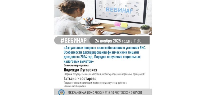 Приглашаем налогоплательщиков принять участие в вебинаре по теме «Актуальные вопросы налогообложения в условиях ЕНС. Особенности декларирования физическими лицами доходов за 2024 год. Порядок получения социальных налоговых вычетов».