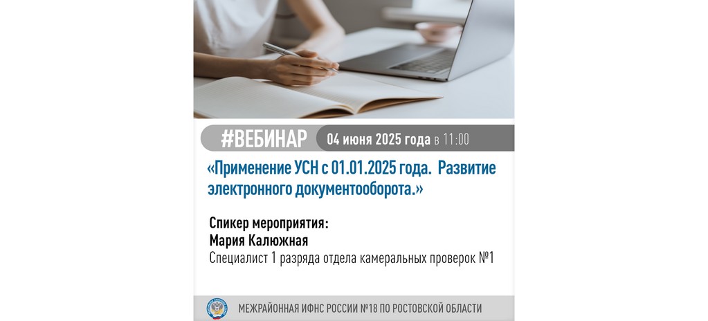 Приглашаем налогоплательщиков принять участие в вебинаре по теме «Применение УСН с 01.01.2025 года.  Развитие электронного документооборота».