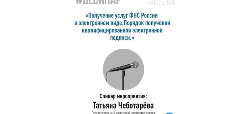 Приглашаем налогоплательщиков принять участие в вебинаре по теме «О возможности получения физическими лицами налоговых уведомлений и требований об уплате задолженности через личный кабинет на ЕПГУ. Получение услуг ФНС России в электронном виде. Интернет-сервисы ФНС России. Порядок получения квалифицированной электронной подписи.».