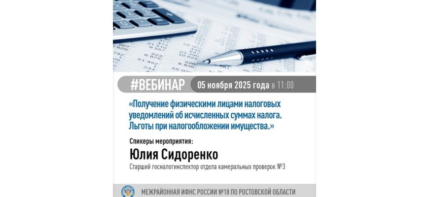 Приглашаем налогоплательщиков принять участие в вебинаре по теме «Получение физическими лицами налоговых уведомлений об исчисленных суммах налога. Льготы при налогообложении имущества»