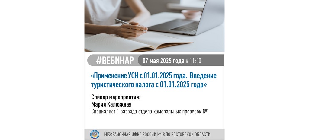 Приглашаем налогоплательщиков принять участие в вебинаре по теме «Применение УСН с 01.01.2025 года. Введение туристического налога с 01.01.2025года».